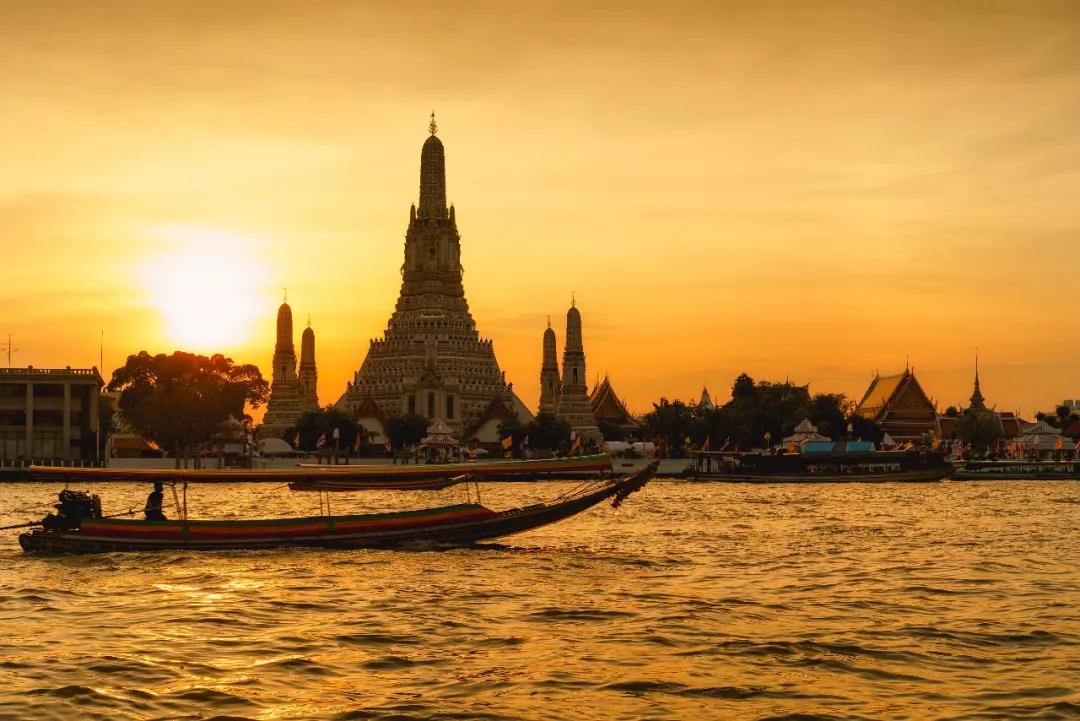 坐在船上还可以以绝佳的视角拍摄到网红打卡地——郑王庙里标志性的大乘舍利式塔,素有“泰国埃菲尔铁塔”的美称。