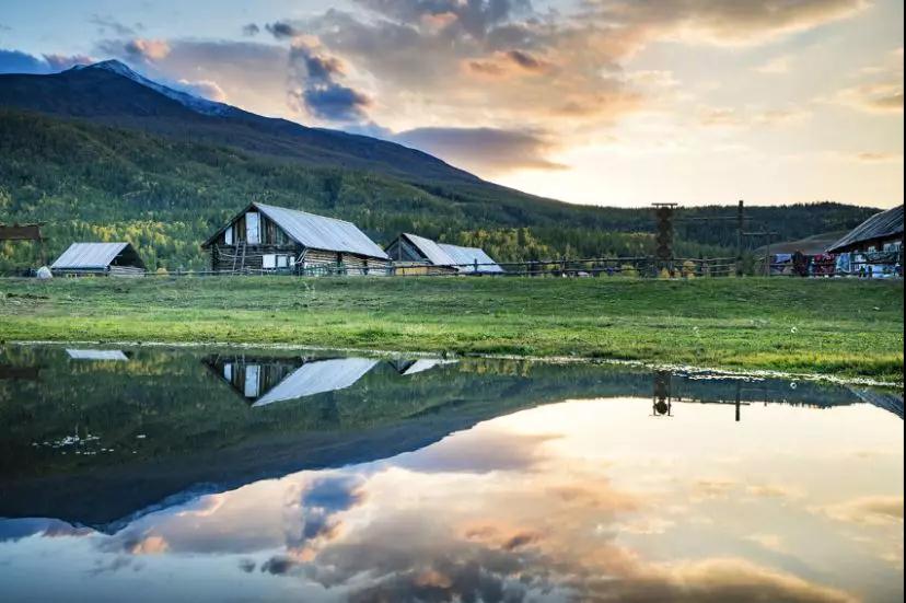 壮丽的阿勒泰山脉风光、“东方瑞士”喀纳斯山花烂漫,郁郁葱葱、湖波荡漾,水色碧玉,冰清玉洁。