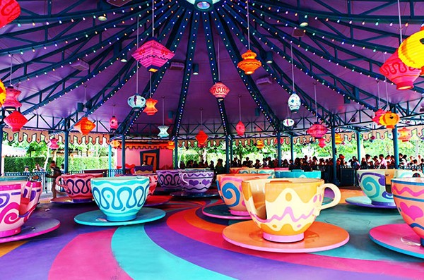 旋转疯密罐其实不是什么十分新鲜的游乐设施,应该说每个大型乐园都有这样类似的设备,也是儿童必玩项目之一。不过此“疯密”并非彼“蜂蜜”,相信有趣和惊险程度会有所不同哟!