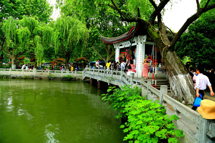 看到的第一个有名的景点便是“断桥”。“断桥”,听字面上意思以为桥是断的,其实不然,“断桥不断”,只是下雪的时候,才会有“断桥残雪”美景。“断桥”让我神往的是《白蛇传》里许仙与白娘子的断桥相遇。在历史的长河里,或许断桥上发生了许多个故事,相遇、相知、相恋,如梦般地痴念着在这诗意的西湖边,与佳人如期而遇,谱写爱的传奇。可是,人来人往,一个个陌生的脸庞,我,独自游荡。