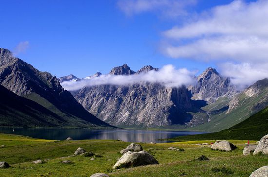 年保玉则(又名:年宝叶什则) “果洛山”的发祥地,位于青海省久治县索呼日麻乡、白玉乡境内。年保主峰终年织雪,有面积约8平方公里的高原冰川,主峰海拨为5369米,壮观的冰体与鬼斧神工般陡峭的山岩和180个湖泊使年保披上了神密的面纱。年保玉则是三果洛的发祥地,山间有湍急的溪流和清丽的流水,涓涓小溪从山岩中穿过,从乱石中翻滚而过,吐出无数道白沫。来自天边的一道道瀑布似白帘般垂落,似银河般洒落人间。年保玉则国家地质公园位于青海果洛州久治县索呼日麻乡境内,由仙女湖和日干措两个景区组成。在这里,登山、徒步穿越、转湖都是非常经典的户外项目。每年6-8月的时候,草原鲜花盛开,美得醉人,你的眼前就是一片壮美而充满神秘气息的群峰。它的磅礴气势令人屏息,它在云层和光线的承托下色彩浓郁,堪比一幅完美画作。