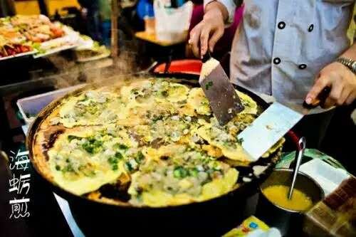 用闽南话讲是“蚵仔煎”,是闽南地区特有的小吃。香鲜细腻、美味可口。海蛎味道有点腥,如何去腥并保持鲜味,海蛎的新鲜程度至关重要。通常,为了去除腥味,有些厨师会在海蛎里拌入鸡蛋。海蛎煎的做法是把蛋围在海蛎煎的周围,保持了海蛎的原味,味道甚是鲜美。