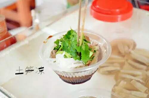 特色食品,是一种由特有产品加工而成的冻品,质地柔韧脆嫩,味道甘冽鲜美,有点Q,吃的时候浇上调味的酱油醋、芝麻酱、黄芥末和厦门的蒜茸辣酱,配以酸甜萝卜、香菜,就成了色香味俱佳的风味小吃,吃起来爽口有味。