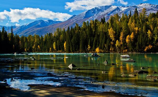 喀纳斯位于夏季的逆温层中,有着夏季少有的泽润与舒爽。走进夏日喀纳斯,感受24℃的温凉,如同住进天然氧吧,令人神清气爽。喀纳斯天高云淡,群山延绵环抱,草原葳蕤生机,雪山草甸倒影在水中,映衬出水天一色的景致,这是一副除尘绝伦的油画。