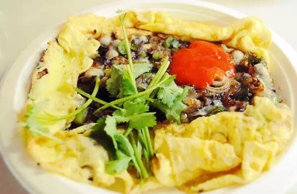海蛎煎:主要原料是牡蛎,也称之为海蛎子。厦门出产的牡蛎,是僧帽牡蛎,体积小,壳成长形或三角形。取出的肉,肉白鳃黑,每只1--2厘米,肉粒均匀。其味道鲜美,临食时,可配上芥辣酱或辣椒酱、芫荽,甚为可口。