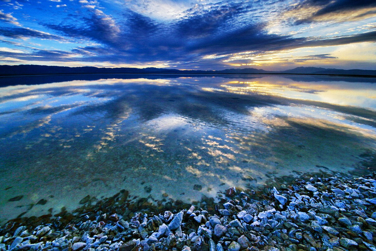夕阳西下前是最适合拍照的时间,天光将变得越来越美。还有就是是雨过天晴的傍晚,白色的湖倒影出湛蓝的天空,棉花糖似的白云,一切都是那么的美好。
