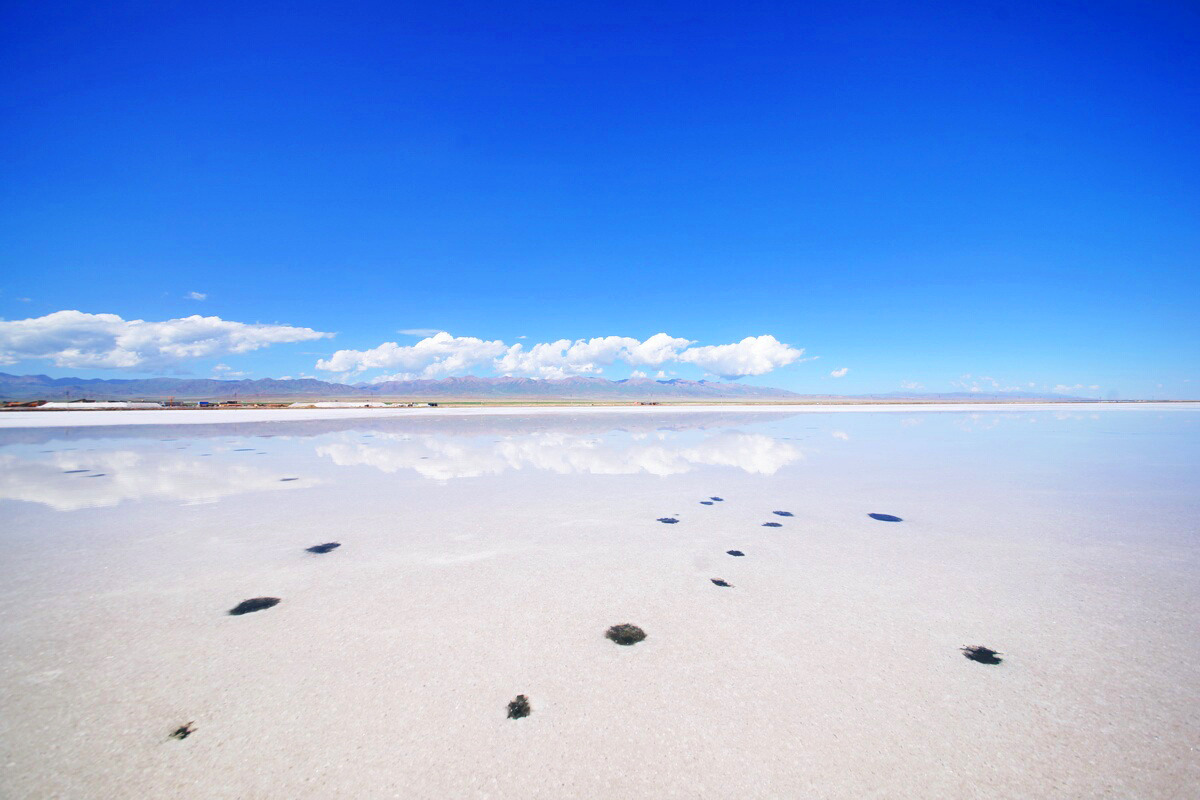 整个盐湖就像一片白色的海洋,在这里脱下鞋子,在如此美的盐滩上踩一踩,是一件多么有趣的事情啊。