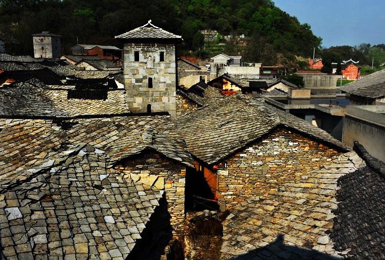 贵州的古镇与江南的小桥流水人家各具历史内涵及独特的建筑风貌,它们的建筑大量运用了石头工艺、干栏式建筑、榫卯工艺等,形成了将石头工艺发挥到极致的屯堡建筑、错落在山中的苗家吊脚楼。