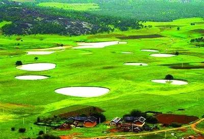 30多个天坑,像星空坠落的明珠,鬼斧神工地镶嵌在草甸中。