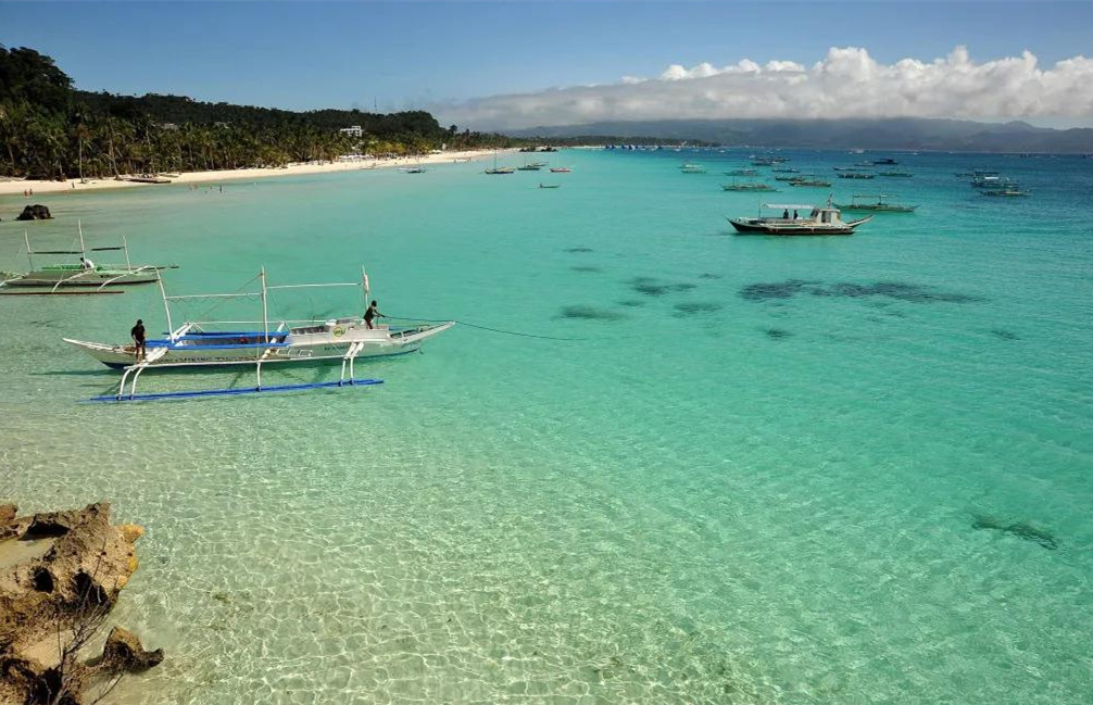 长滩岛的海水清澈而又透明,在阳光照射之下有如液体宝石。